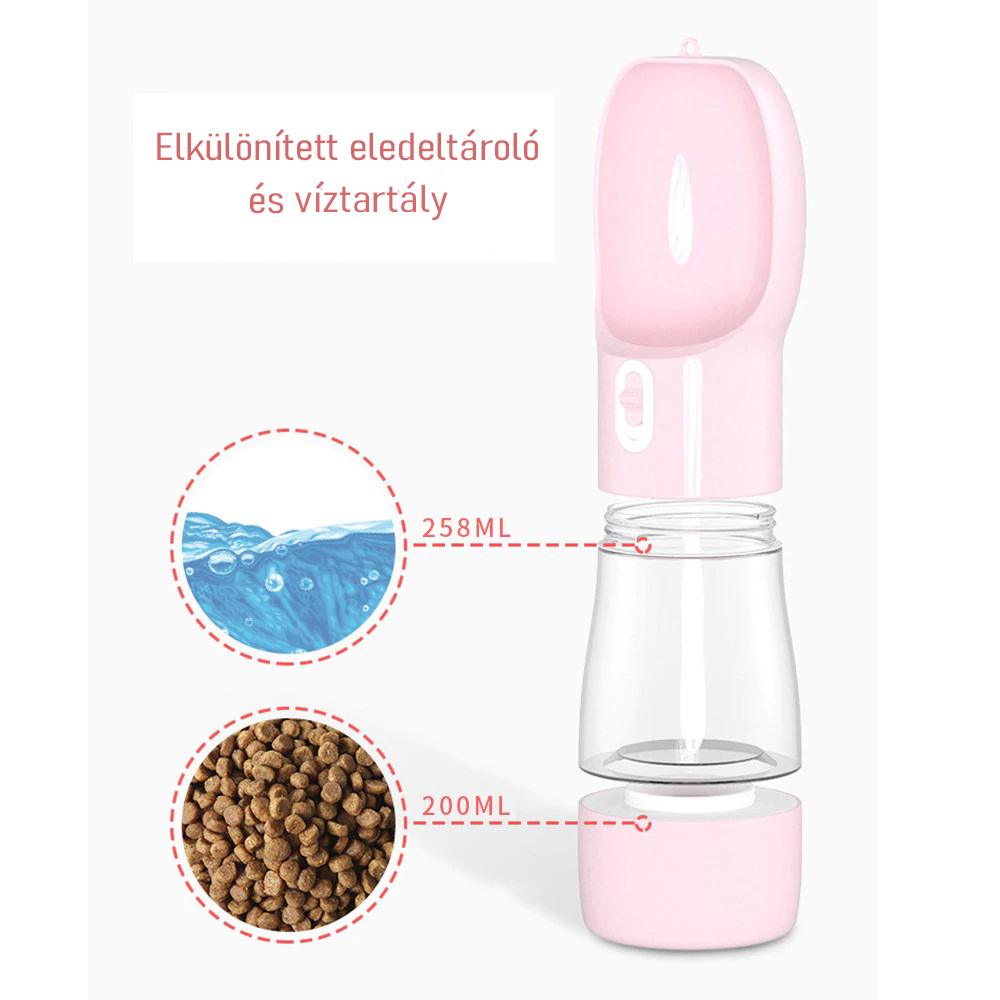 Bizonyára Te is úgy vágsz neki minden hosszabb sétának négylábú pajtásoddal, hogy előtte elpakolsz kedvencednek eledelt, vizet és egy tálkát, amiből tudod majd itatni. Ez már kapásból három dolog, amelyet magaddal kell cipelned egy táskában. Pedig van egyszerűbb megoldás. Ezzel a kütyüvel ezeket a tárgyakat egy kompakt méretű és egyszerűen hordozható eszközzel helyettesítheted.