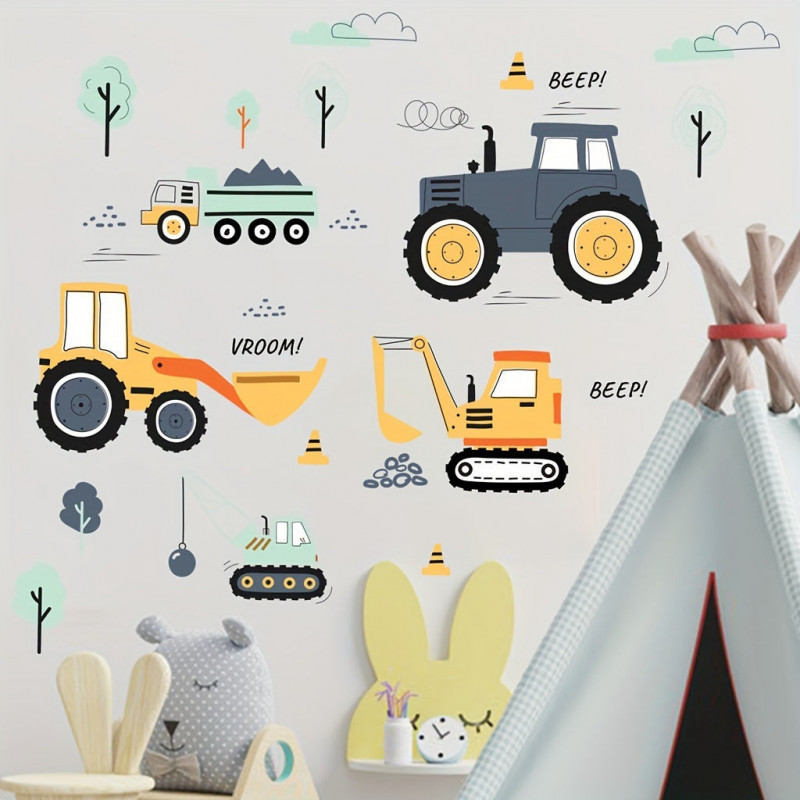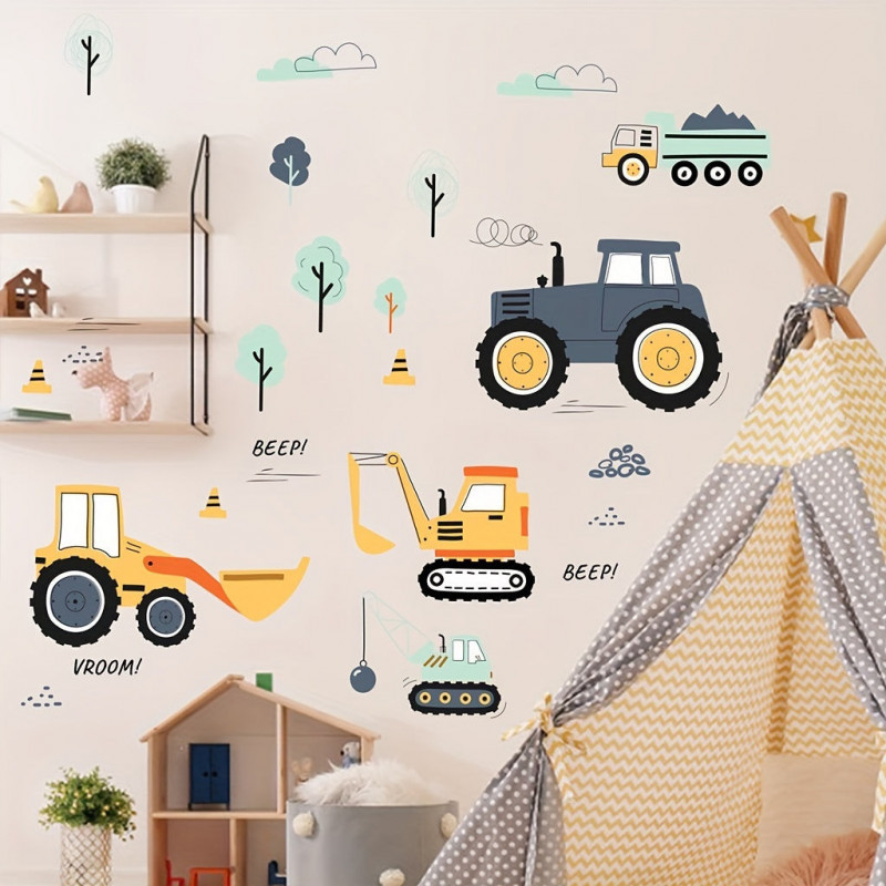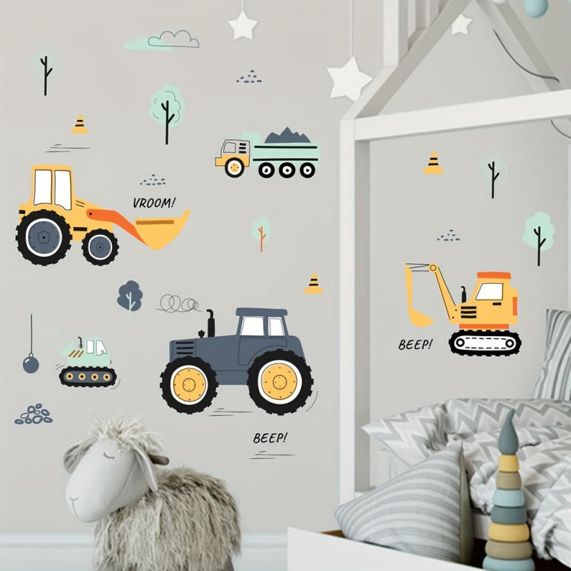 • Fantáziadús minták: A matricák játékos és színes mintázattal rendelkeznek, amelyek a gyermekek képzelőerejét és kreativitását ösztönzik. A kis munkagépek életre kelnek a szoba falán!