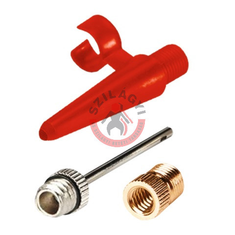 A készlet univerzális hegyeket is tartalmaz golyók, matracok, stb. felfújásához.