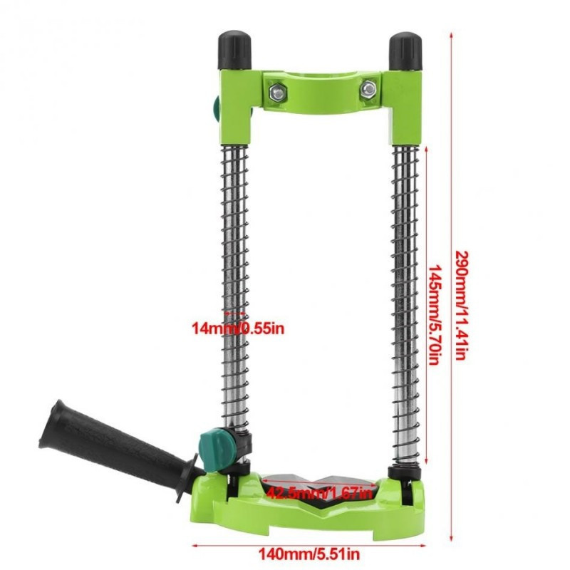 A fúrót 90 fokban döntheted benne, hogy megtaláld a legmegfelelőbb pozíciót. Talapzata úgy lett kialakítva, hogy ha szeretnéd, azt le is rögzítheted, így csak a fúrásra kell odafigyelned. Rugónak köszönhetően, ha kész a furat a kütyü visszaáll az alaphelyzetbe, továbbá segíti az egyenletes fúrást is. Csak standart 43mm-es fúrókkal kompatibilis.