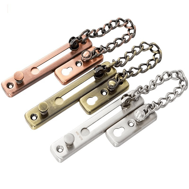 A biztonságvédelmi lánc rozsdamentes acélból készül, így garantáltan extra erős és tartós eszköz. Multifunkciós eszköz, mely egyaránt védelmet nyújt a betolakodók ellen otthoni használat esetén vagy szállodai ajtóra történő telepítés esetén.