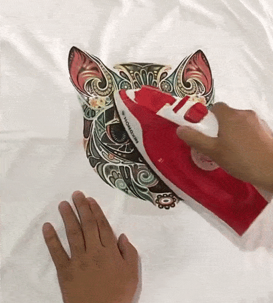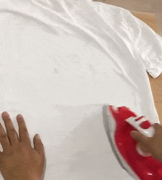 Készítsd elő a vasalódeszkát, vagy vasaló terítőt. Vasald át a pólót, amelyre rá szeretnéd tenni a mintát. Ezután helyezd el a ruhán a matricát. Kapcsold ki a gőzölő funkciót, a vasaló hőmérséklete 120-160 °C között legyen.