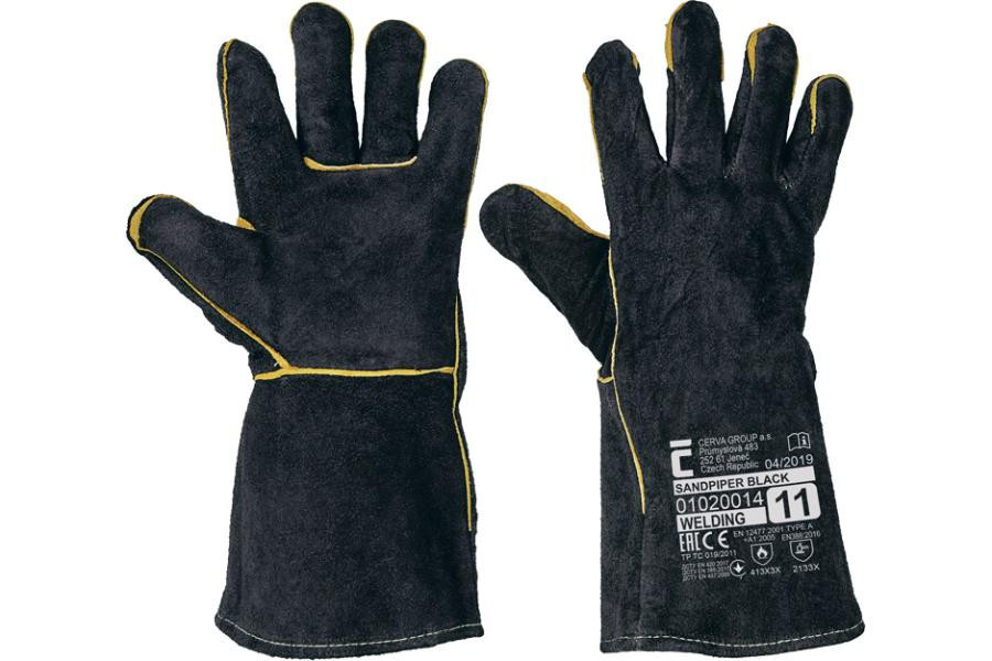 35 cm hosszú, hasított marhabőr kesztyű pamut béléssel és fedett varratokkal. Tanúsítvány: hegesztés - A típus