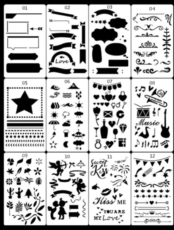 Ezzel a 12 darabos sablon készlettel, egyedivé teheted a legunalmasabbnak kinéző füzetet is!