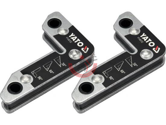 2 mágneses rögzítőből álló készlet, amely hegesztéshez és összeszereléshez használható különböző elemekhez: lemezek, rögzítőelemek, lapos rudak, profilok, csövek stb. Az erős mágneseknek köszönhetően biztosítják a hegesztett elemek biztonságos tartását.