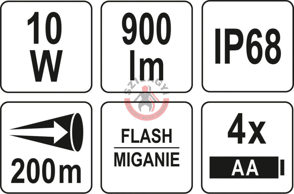 3 üzemmód: magas 900 lm / alacsony 450 lm / impulzus (SOS)