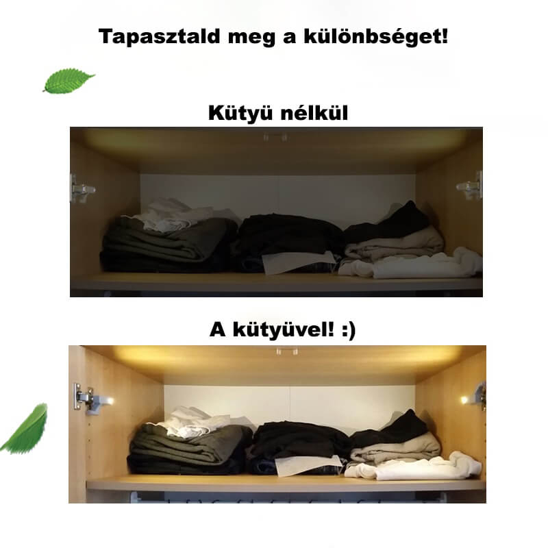 Akkor szerezd be Te is ezt a Szekrény világítást, amelynek hála soha többé nem lesz problémád a nem megfelelő fényviszonyokkal a bútoraidban. A termékkel bevilágíthatod a szobaszekrényedet, a konyhaszekrényedet, a gardróbodat és a fürdőszobai mindent is.