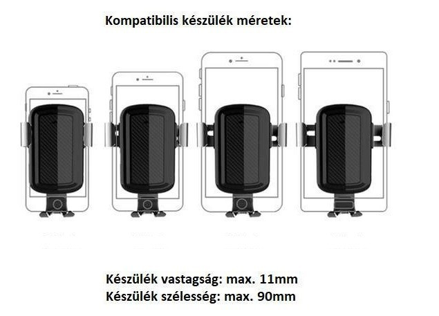 Kompatibilitás: 4-6" kijelzős telefonokkal (60-90 mm széles, 11 mm vastag)