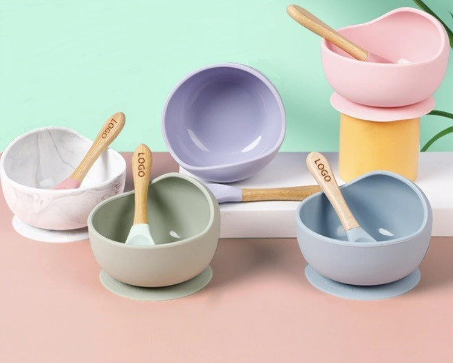 Szilikon étkészlet babáknak, állítható előke és vákuumtalpas tányér kanálkával