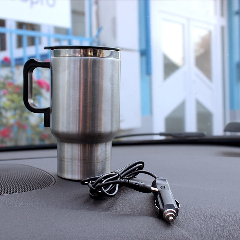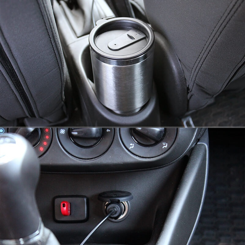A termék szivargyújtóról működik, így minden kocsival kompatibilis. Nem kell bekapcsoló gombokkal és akkumulátorokkal bajlódnod, csak helyezd áram alá és már melegít is. Acél teste és beépített termosztát funkciója, pedig biztosítja, hogy bárhol élvezhesd forrón a kedvenc italodat.