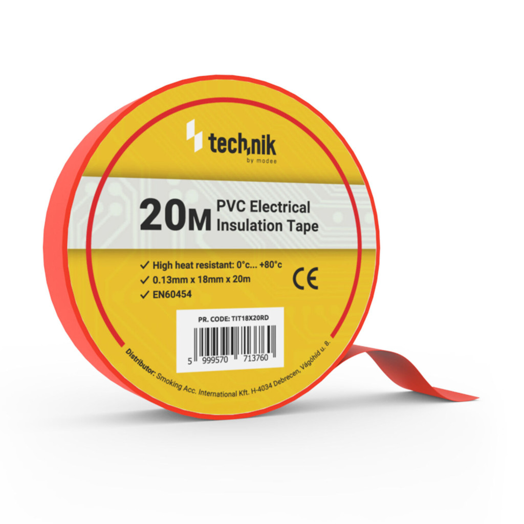 20 méter hosszú és 18 mm széles, piros színű Technik szigetelőszalag ideális választás alacsony feszültségű elektromos vezetékek tartós szigetelésére, rögzítésére, javítására, vagy jelölésére, de használhatjuk kötegeléshez is!