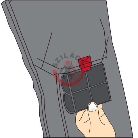 Csúsztassa be a munkanadrág térdén található speciális "zsebekbe".