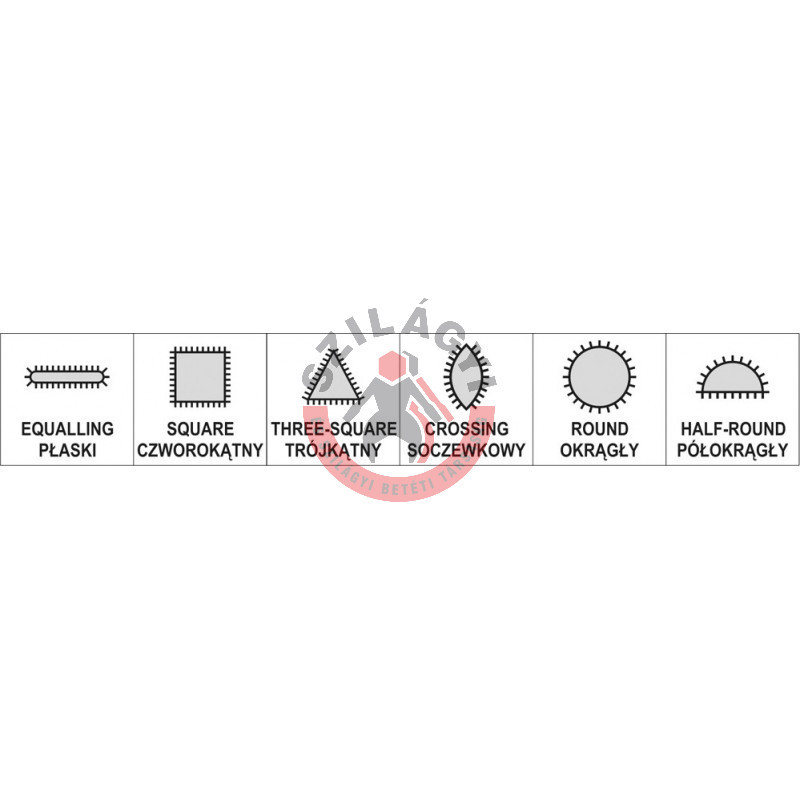 Található benne lapos, kerek, félkör, háromszög, négyzet és ovális, formák.