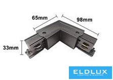 UNIVERSO Háromfázisú sínhez L-alakú toldóelem fekete 98x98x33mm