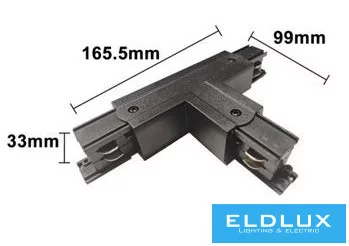 UNIVERSO Háromfázisú sínhez T-alakú toldóelem fekete 165x99x33mm