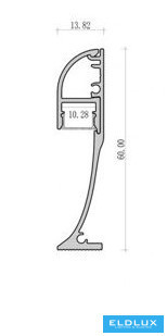 UNIVERSO Lábazati profil opál takaróval 10mm-es LED szalagnak Fekete 2000x14x60mm