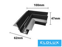 UNIVERSO Mágneses sülyesztett sínrendszerhez sarokelem DC:48V Fekete 100x62x47mm
