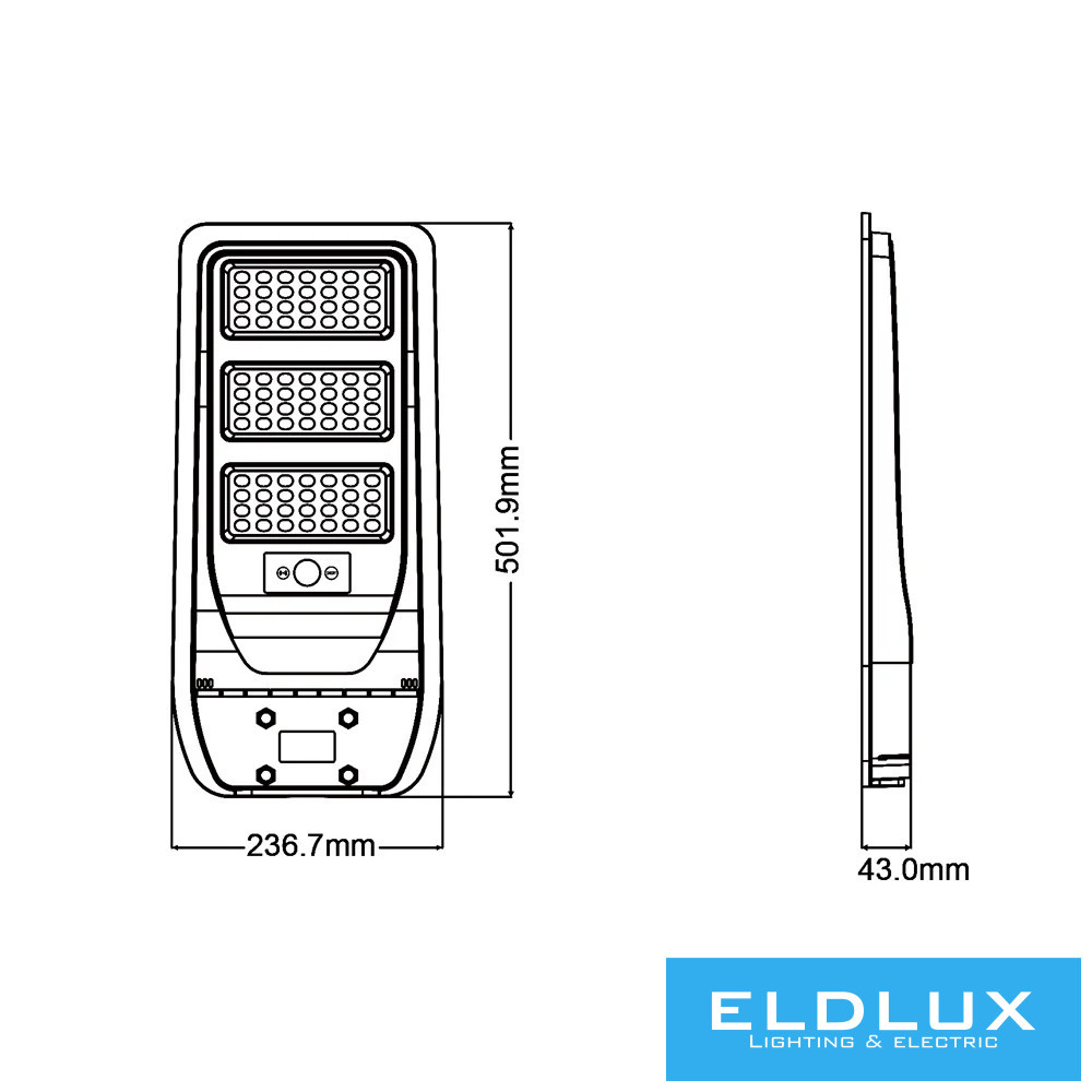 UNIVERSO Solar utcai lámpa 3.2V-15AH 2000lm 4000k IP65 fekete 602x237x43mm