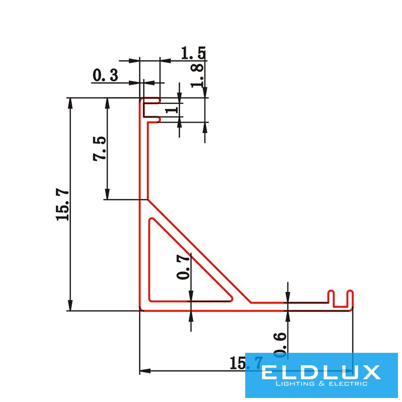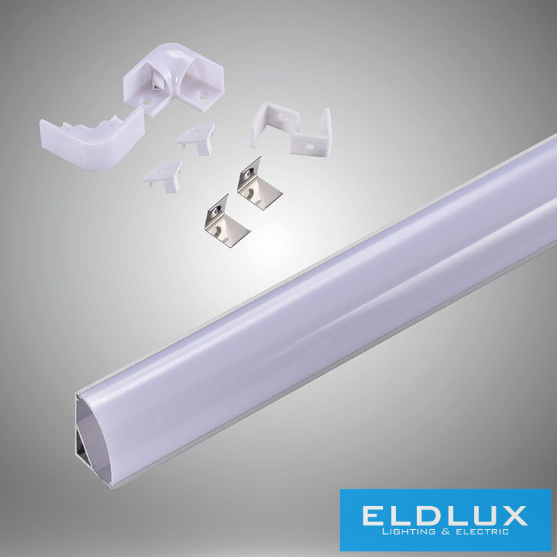 UNIVERSO sarokhoz aluprofil matt fehér fedlappal+végzáró 2m 45° 15.7*15.7mm