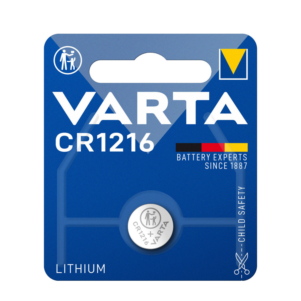 Varta CR1216 – hosszú élettartamú, megbízható lítium gombelem, precíziós készülékekhez.