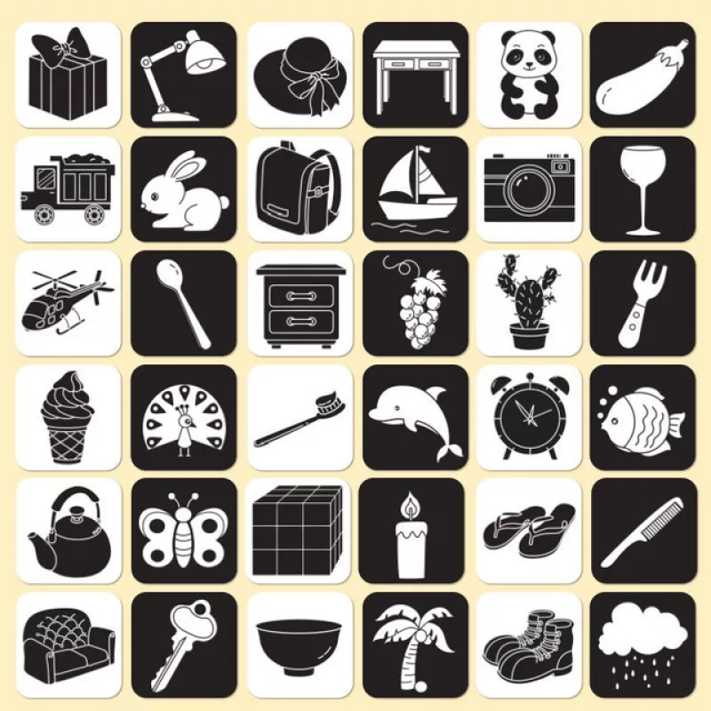 A kártyák tele vannak élénk színekkel, kontrasztos mintákkal és egyszerű formákkal, amelyek a pici szemeket rabul ejtik.