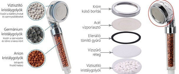 - Víztisztító kristálygolyók (baktérium és szennyeződés szűrés)