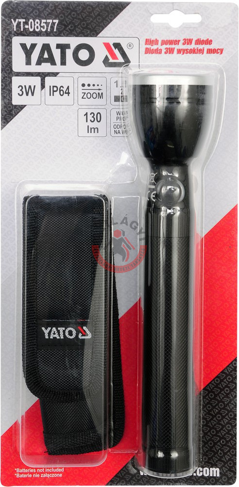 A YATO zseblámpa CREE XPE 130 lm fényerősségével és 3 W-os teljesítményével tökéletesen bevilágítja a területet. Kompakt mérete hihetetlen fényerővel párosul. Három világítási mód közül választhatunk: erős, gazdaságos, SOS vészjelzés. Beépített zoom funkciójával rendelkezik: a PMMA lencsével történő nagyítás lehetővé teszi a fénysugár fókuszának beállítását és akár 200 méteres távolságra is világít. Strapabíró, fém háza hosszú élettartamot biztosít. Bordázott felülete csúszásmentességet ad. A zseblámpa vízálló, IP64-es védettséggel rendelkezik.