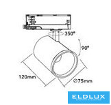 UNIVERSO Háromfázisú sínhez spotlámpa 30w 3250lm 3000k Ra90 38° IP20 Fekete D75x120mm 5év