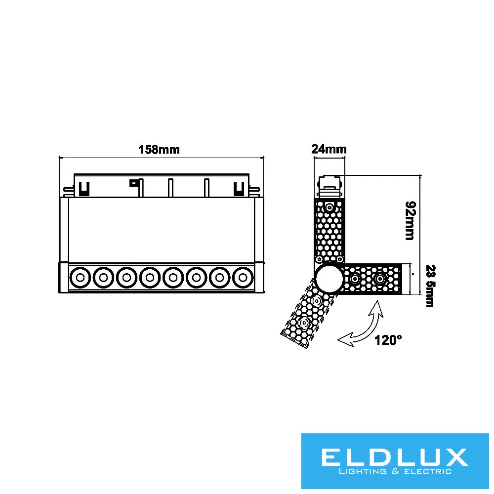 UNIVERSO Mágneses sínbe szerelhető állítható spot Lámpa DC:48V 10w 800lm 3000k RA90 IP20 Fekete 158x45x24mm