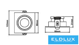 UNIVERSO süllyesztett spot lámpa 1xGU10 IP20 88x88x31mm kivágás:75X75mm fekete 5év