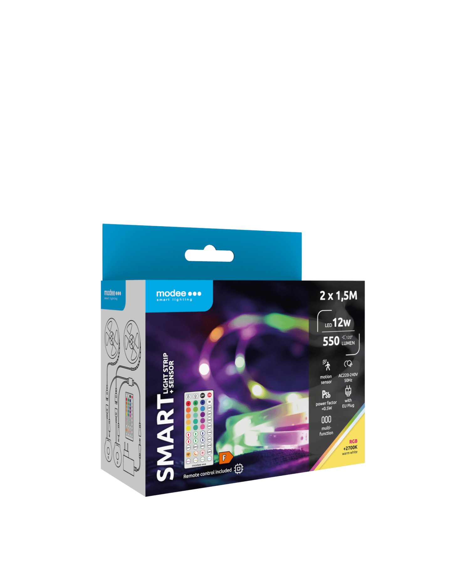 Modee LED Smart (Remote) Szalag 12W IP20 +sensor 2700K+RGB (550 lumen) 2x1,5M