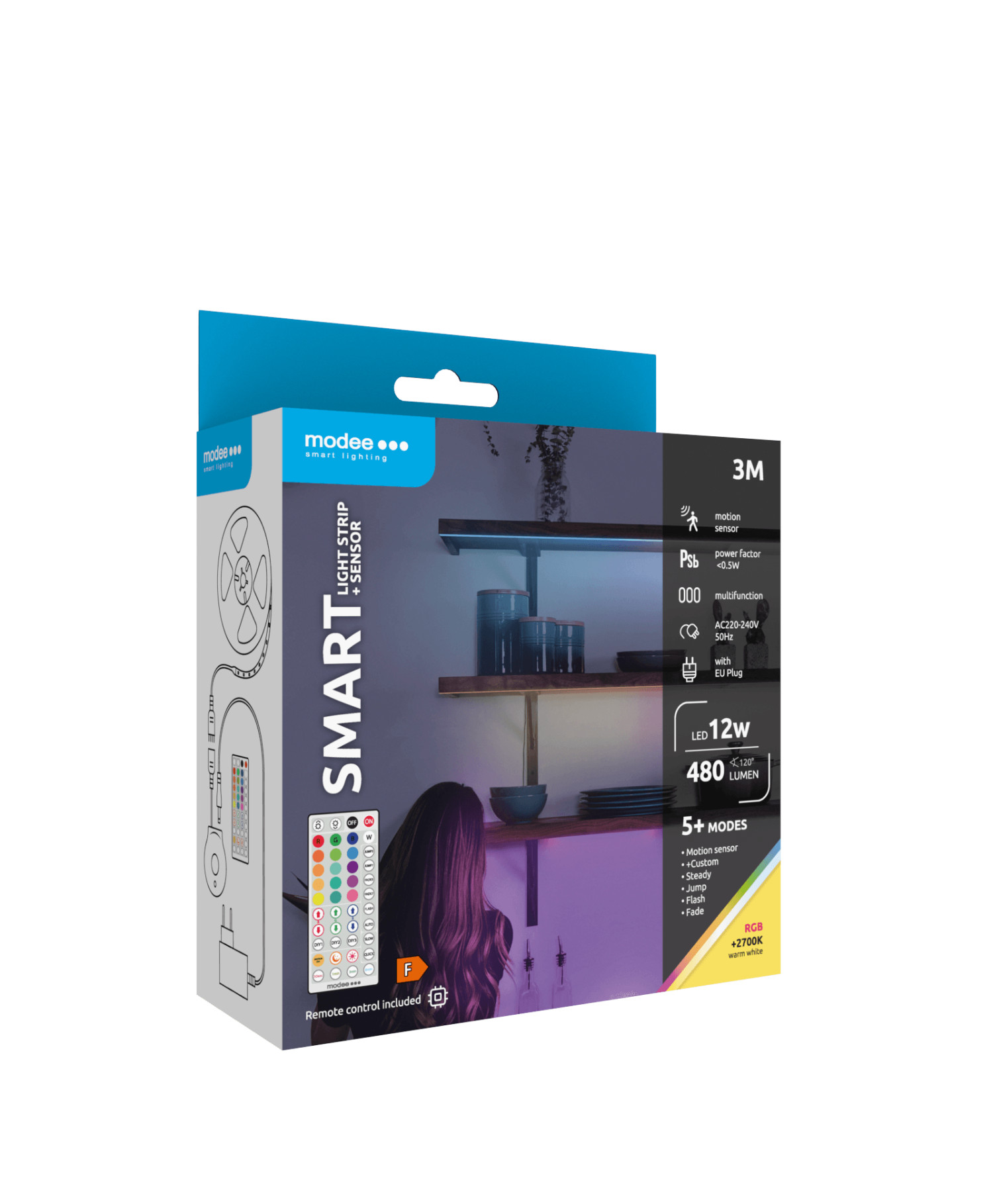 Modee LED Smart (Remote) Szalag 12W IP20 +sensor 2700K+RGB (480 lumen) 3M